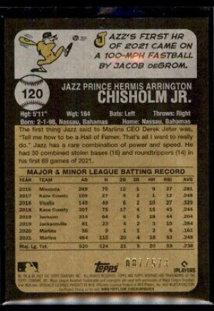 Jazz Chisholm Jr. 2022 Topps Heritage Chrome Red Refractor 087/573 #120 Miami