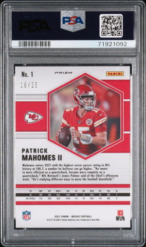 2021 Panini Mosaic Patrick Mahomes II #1 /25 PSA 10