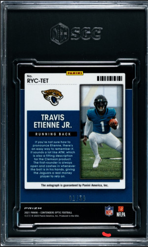 2021 Contenders Optic Rookie of the Year Silver Prizm Auto Travis Etienne 1/40 SGC 8 Jersey match