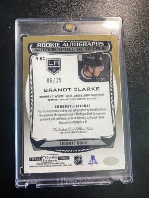 Brandt Clarke 22-23 OPC Platinum Seismic Gold Rookie Auto /25