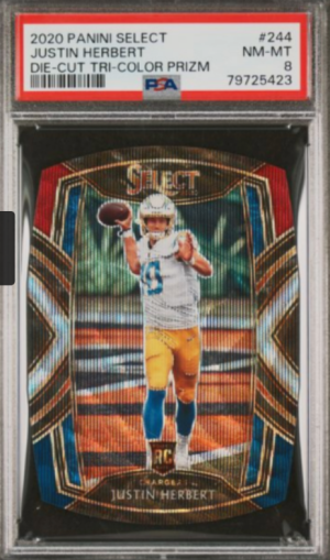 Justin Herbert Rookie 2020 Panini Select Die-Cut Tri Color