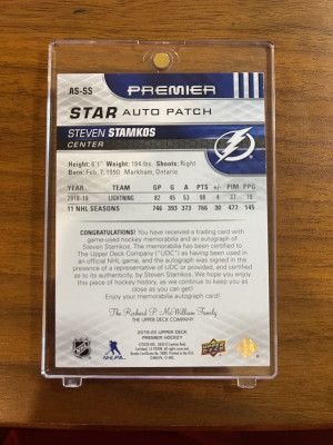 STEVEN STAMKOS, 2019 Upper Deck Premier Star Auto Patch #AS-SS, /25