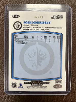 2016-17 O-Pee-Chee Platinum Retro Orange Rainbow /49 Josh Morrissey #R-89 Rookie RC