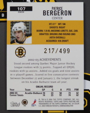 Patrice Bergeron 2003-04 Topps Pristine Rookie Refractor /499 #107 MINT