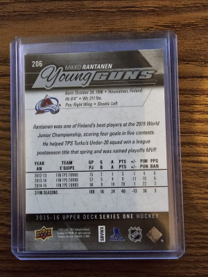 2015-16 Upper Deck Mikko Rantanen YG Young Guns Rookie RC #206 Avalanche
