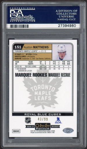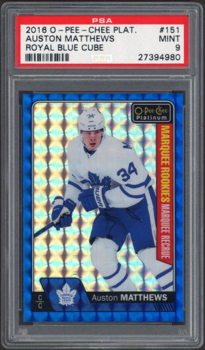 2016-17 O-pee-chee OPC Platinum #151 Auston Matthews Royal Blue Cubes /99 PSA 9 Mint