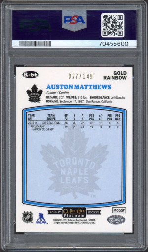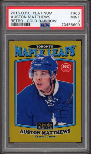 2016-17 O-pee-chee OPC Platinum Retro Gold Rainbow R66 Auston Matthews /149 PSA 9 Mint
