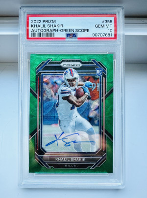 2022 PRIZM KHALIL SHAKIR ON CARD AUTOGRAPH-GREEN SCOPE **Jersey Number 10/75** POP 6