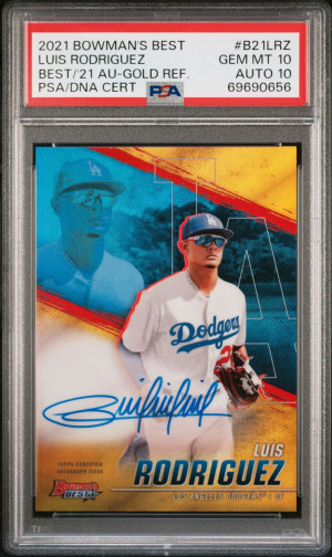 2021 BOWMAN'S GOLD REFRACTOR LUIS RODRIGUEZ RC #/50 PSA 10 AUTO 10
