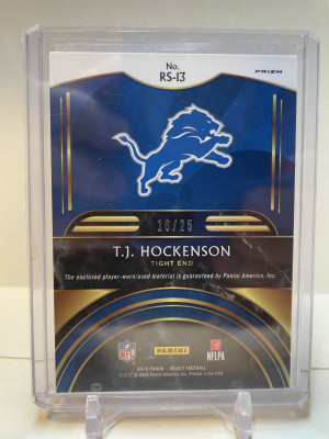 2019 Selec T.J. Hockenson Rookie Tie Dye Patch /25 - 3 Color Patch