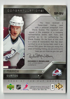 2006-07 Upper Deck The Cup Signature Patch Autograph Marek Svatos 38/75