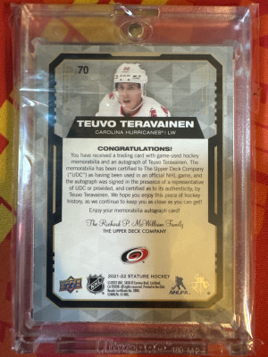 2021-22 Upper Deck Stature Hockey Tuevo Teravainen Patch Auto 1/1