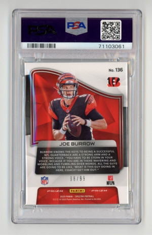 2020 Panini Spectra #136 JOE BURROW TRUE Rookie RC SP SILVER PRIZM #/99 - PSA 9