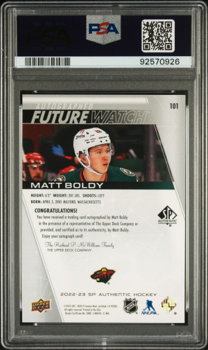 2022 SP Authentic Future Watch Auto /999 Matt Boldy #101 PSA 10