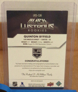 2021/22 UD Black Quinton Byfield Black Lustrous Auto 92/99