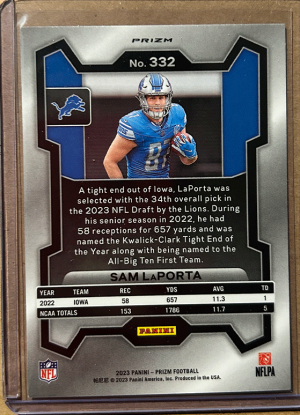 2023 Panini Prizm Sam LaPorta RC Red White Blue #332
