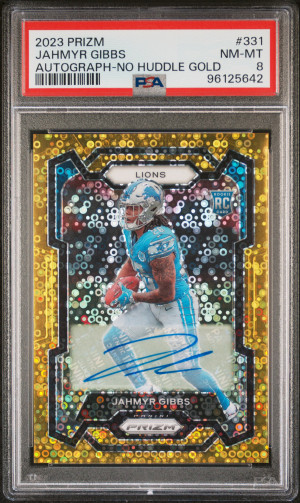 2023 Panini Prizm Jahmyr Gibbs Autograph-No Huddle Gold /10
