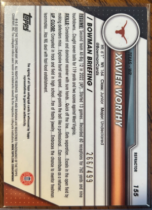 2022 Topps Bowman U Xavier Worthy #155 Autograph #266/499