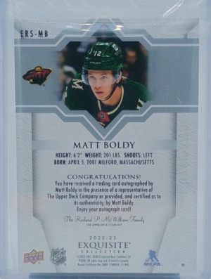 Matt Boldy Exquisite Collection Rookie Auto /99