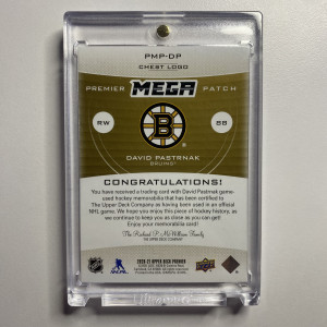 2020-21 Upper Deck Premier David Pastrnak Mega Patch Chest Logo /22 Game-Used