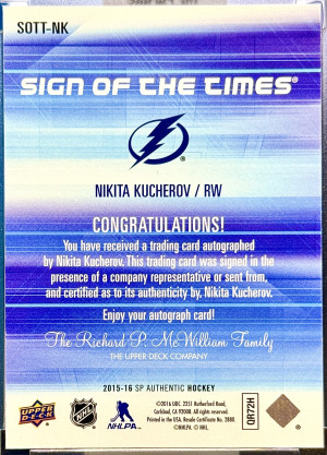 Nikita Kucherov 2015-16 SP Authentic Sign Of The Times Auto