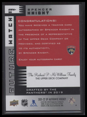 2021 SP Authentic Spencer Knight #01FW-SK Retro Future Watch Auto #'d /90