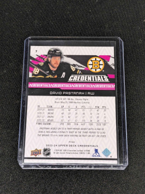 2023-24 Upper Deck Credentials David Pastrnak Pink /49 Boston Bruins #7