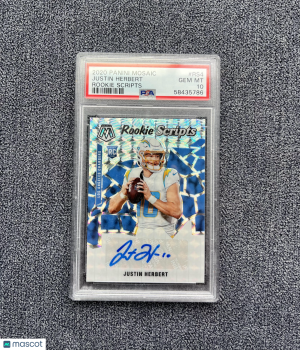 2020 Panini Mosaic Rookie Scripts Justin Herbert Silver Prizm Auto #RS4 PSA 10