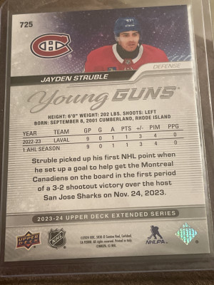 2023-24 Upper Deck Young Guns Jayden Struble RC Montreal Canadiens #725