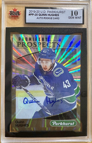 2019-20 U.D. PARKHURST #PP-20 QUINN HUGHES AUTO ROOKIE CARD