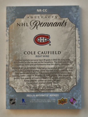 23-24 Artifacts Cole Caufield NR-CC NHL Remnants Patch Montreal Canadians