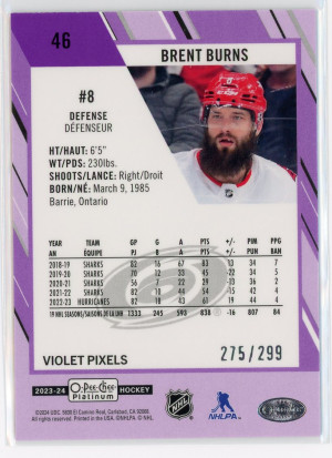 2023-24 O-Pee-Chee Platinum #46 Brent Burns Violet Pixels /299