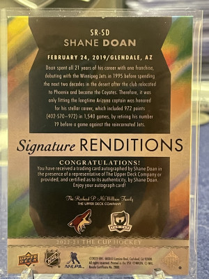 22/23 UD The Cup Shane Doan Signature Renditions Auto Card # SR-SD