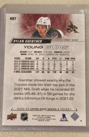 2022-23 Upper Deck Series 2 Dylan Guenther #497 YG