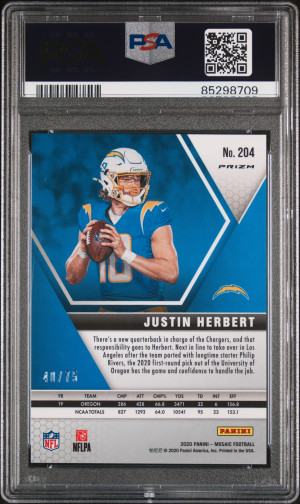 2020 Panini Mosaic #204 Justin Herbert No Huddle Blue /75 PSA 10
