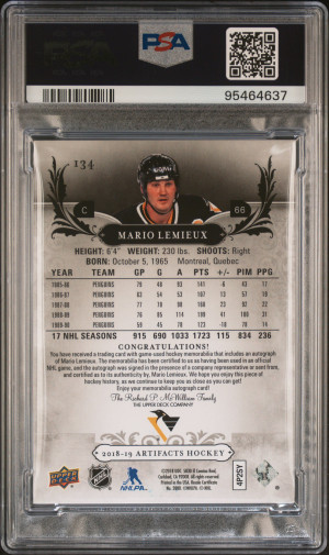 2018 Upper Deck Artifacts Mario Lemieux #134 Patch Auto /10 Emerald PSA 9 POP 1