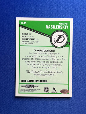 2019-20 O Pee Chee Platinum - Andrei Vasilevskiy Red Rainbow Auto #R-15