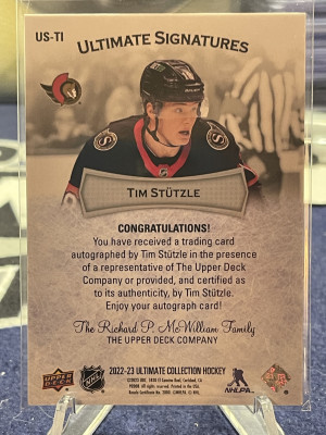 Tim Stutzle 2022-23 UD Ultimate Collection Ultimate Signatures Autograph Ottawa