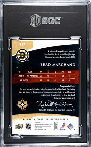 2009-10 Ultimate Collection Brad Marchand RC AUTO /299 SGC 8.5