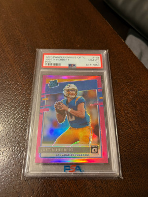 2020 Optic Justin Herbert Rookie Pink Prizm PSA 10