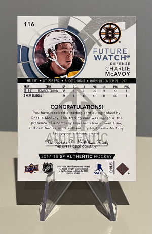 17-18 SP Authentic - Charlie McAvoy - Future Watch Auto /999