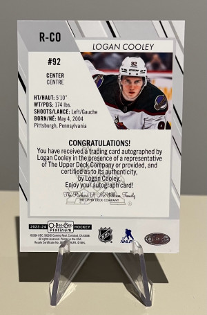 23-24 OPC Platinum - Logan Cooley - Rookie Autograph