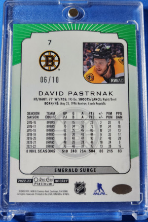 2022-23 O-Pee-Chee Platinum Emerald Surge David Pastrnak /10