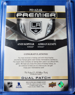 2022-23 Upper Deck Premier Dual Patch Anze Kopitar, Adrian Kempe /15 (3 color)