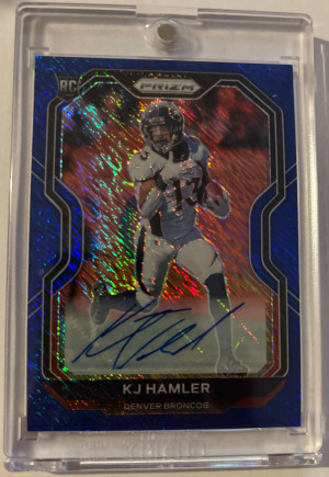 π 2020 Prizm Kj Hamler Blue Shimmer Auto RC Rookie Card #315 Denver Broncos RC