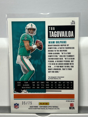 2020 Panini Contenders Optic Tua Tagovailoa Blue Prizm Auto /75 #103