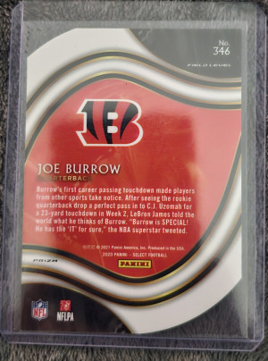 Joe Burrow 2021 Select Orange Die Cut