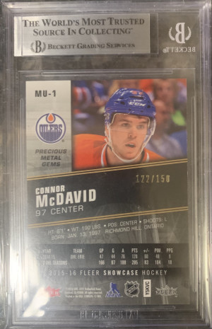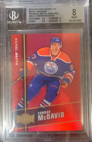 Connor McDavid 2015-16 Fleer Precious Metal Gems PMG Red /150 Rookie RC #MU-1 BGS 8