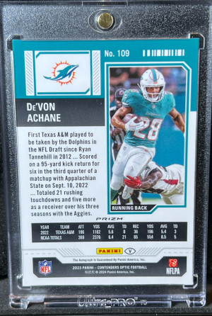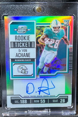 De’Von Achane Rookie Variation On Card Auto Rookie Ticket 2023 Contenders Optic