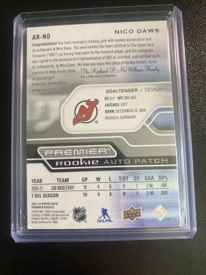 Nico Daws 21-22 Premier Rookie Auto Patch /249